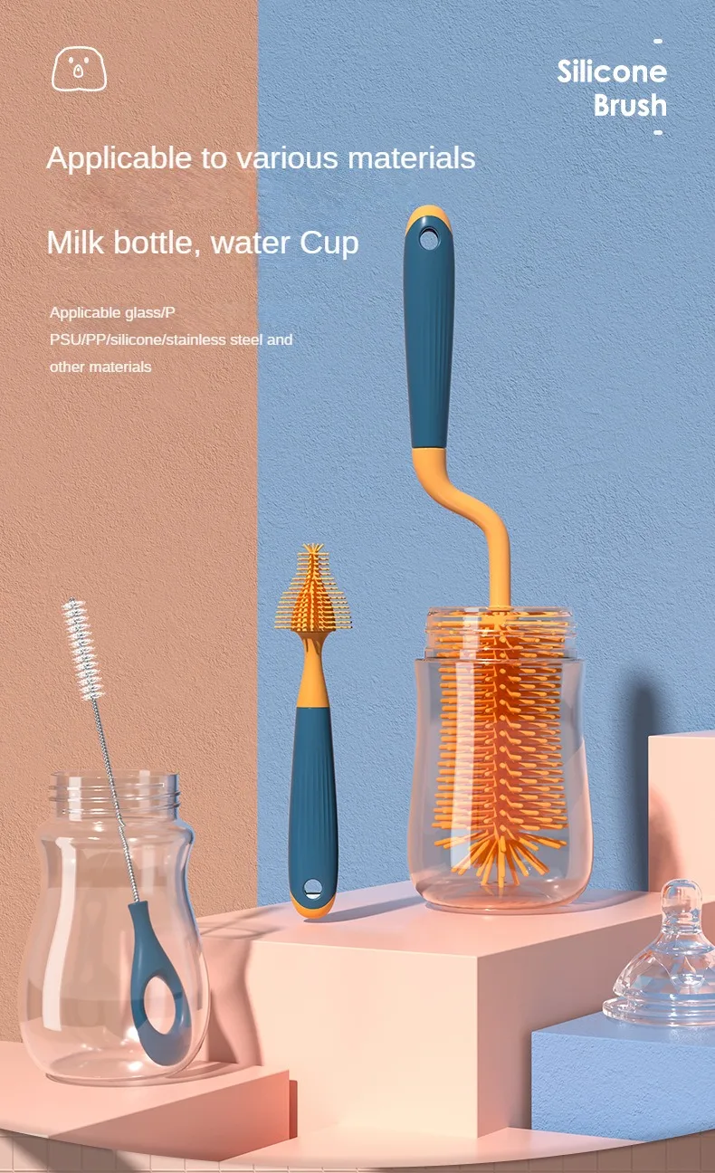 1/2/3pcs Silicone Brush for Bottles 360 Degree Rotation Baby Bottle Pacifier Cleaning Brush Nipple Dropper Brushes Set Baby Item